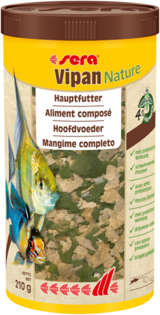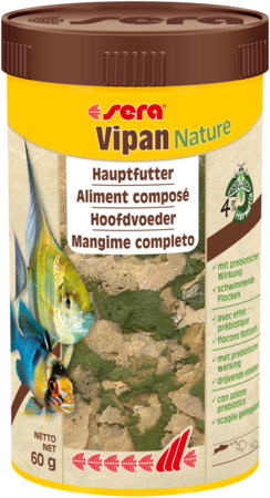 sera Vipan Nature est l’aliment composé sous forme de flocons flottants, sans colorants ni conservateurs, pour tous les poissons d’ornement se nourrissant en surface.